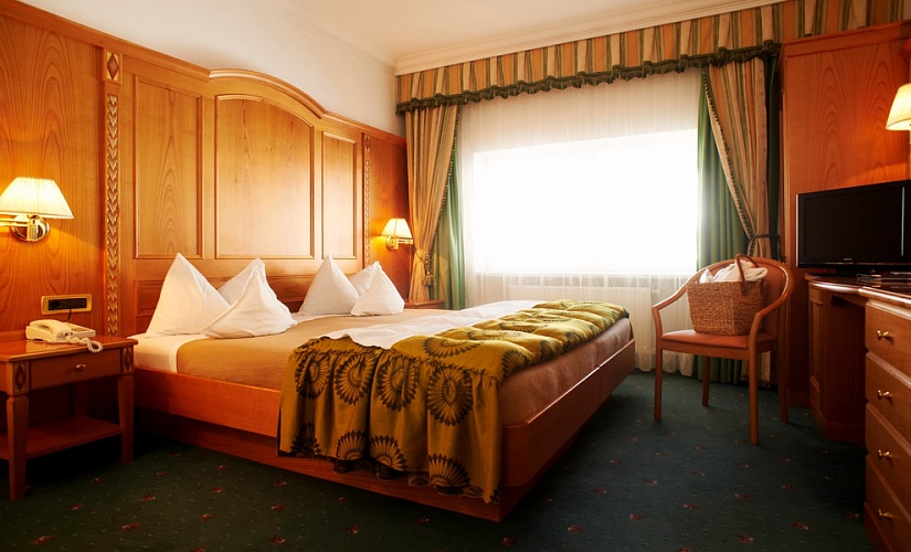 Junior Suite Panorama (ок.34-50 кв.м) - ванна/душ, туалет; мини-бар, цифровое телевидение, доступ в Интернет, телефон, сейф, фен; зона отдыха с тирольской печью; балкон с панорамным видом; максимальное размещение - четыре человека.